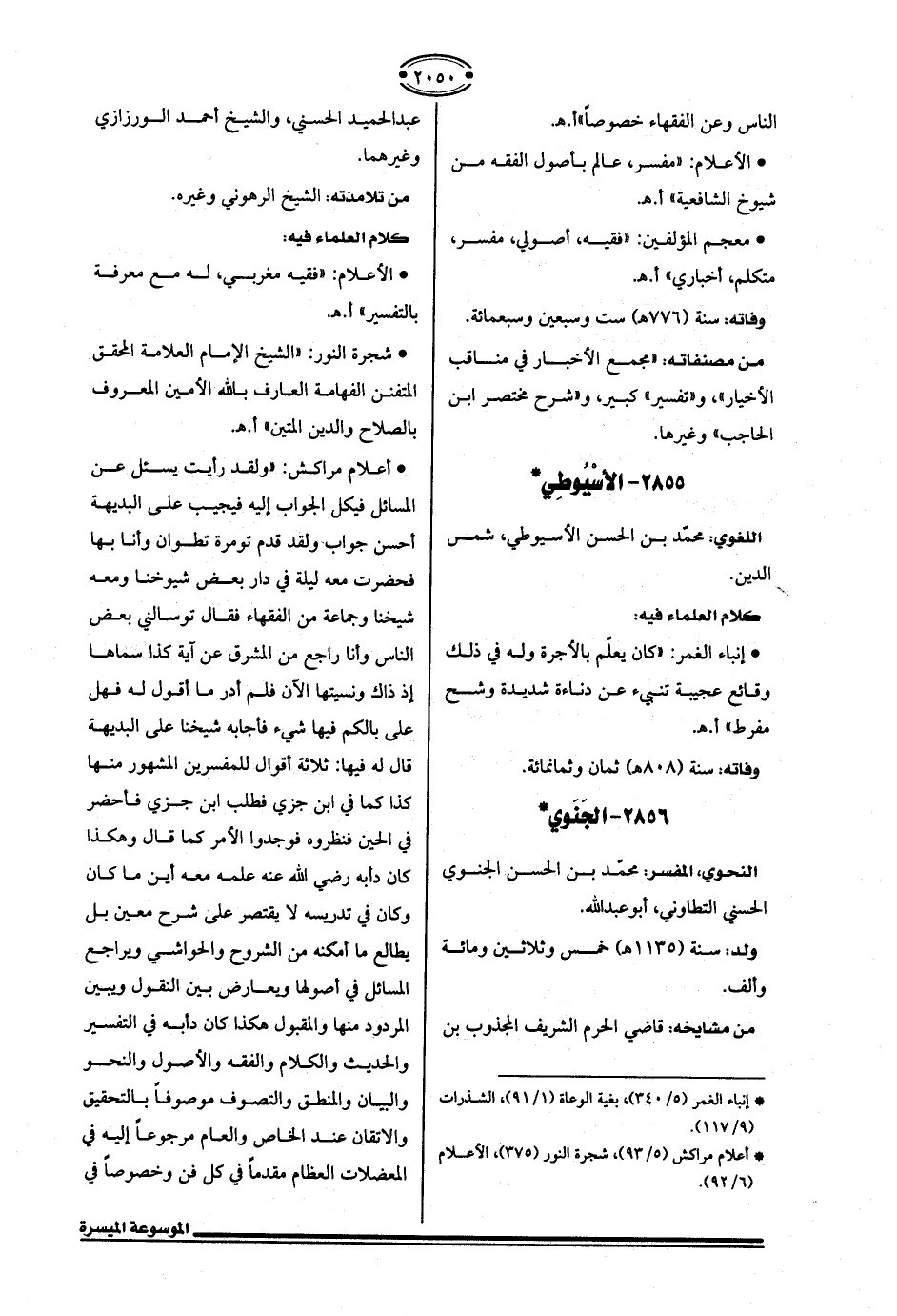 • الأعلام: "مفسر، عالم بأصول الفقه من شيوخ الشافعية" أ. هـ.