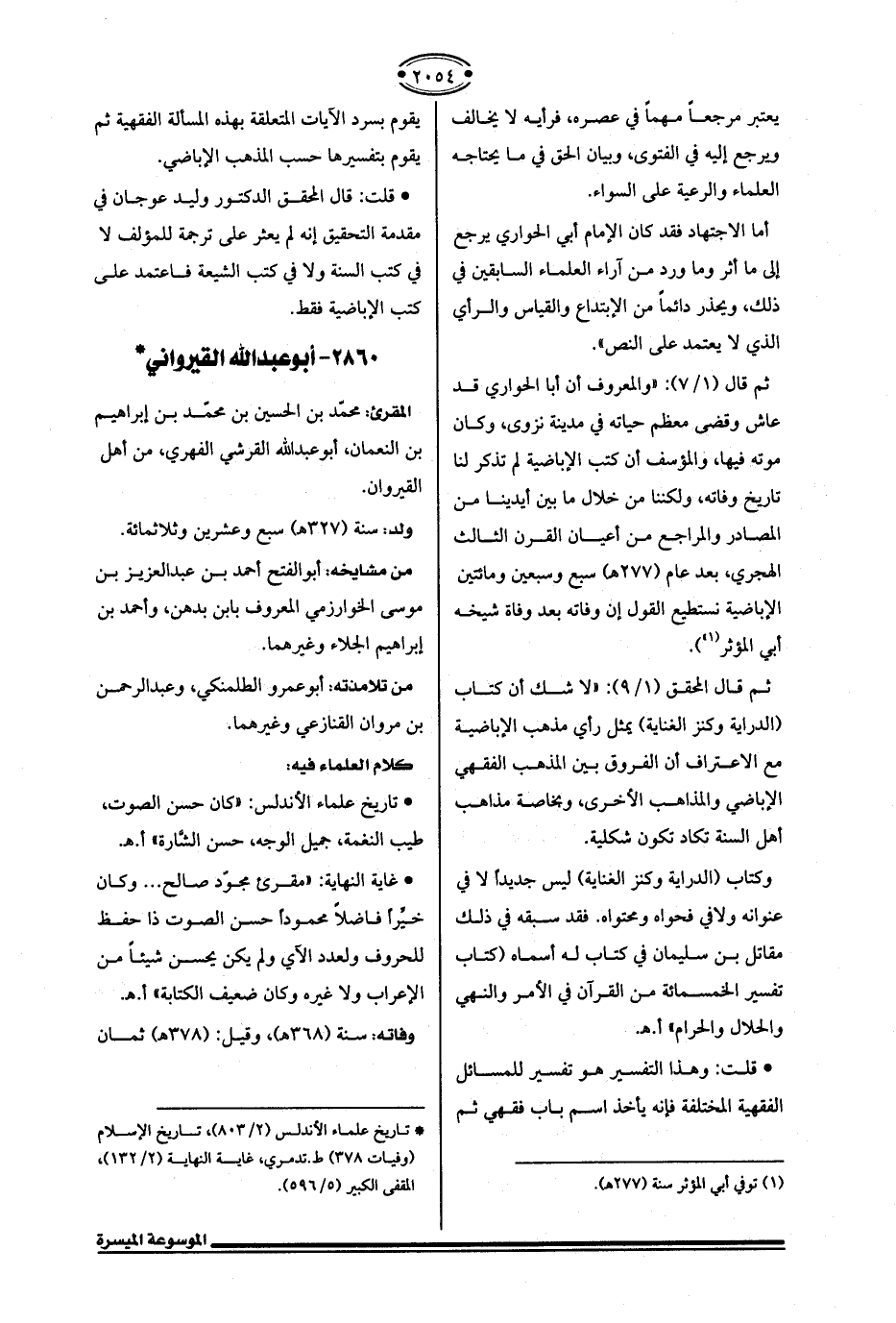 • قلت: قال المحقق الدكتور وليد عوجان في مقدمة التحقيق إنه لم يعثر علي ترجمة للمؤلف لا في كتب السنة ولا في كتب الشيعة فاعتمد علي كتب الإباضية فقط.