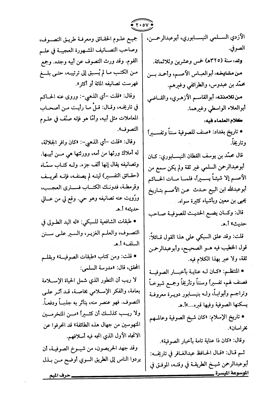 • قلت: ومن كتاب "طبقات الصوفية" وبقلم المحقق، قال: "مدرسة السلمي: