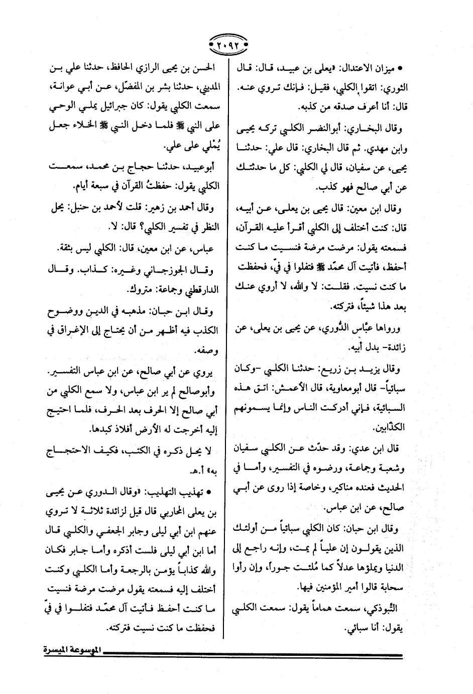 * ميزان الاعتدال: "يعلى بن عبيد، قال: قال الثوري: اتقوا الكلبي، فقيل: فإنك تروي عنه. قال: أنا أعرف صدقه من كذبه.