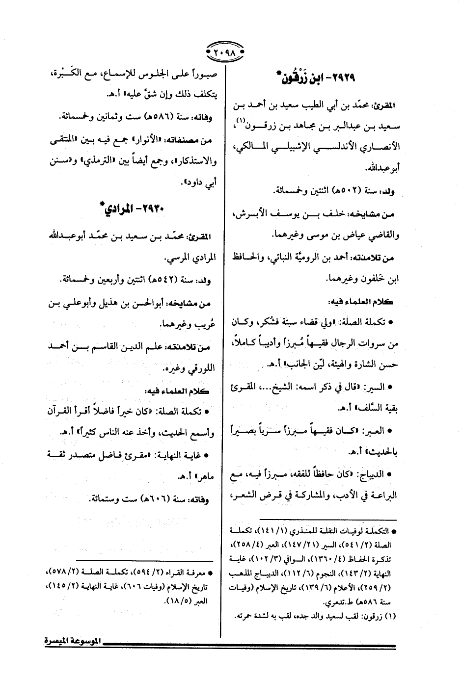 المقرئ: محمّد بن أبي الطيب سعيد بن أحمد بن سعيد بن عبد البر بن مجاهد بن زرقون (¬1)، الأنصاري الأندلسي الإشبيلي المالكي، أبو عبد الله.