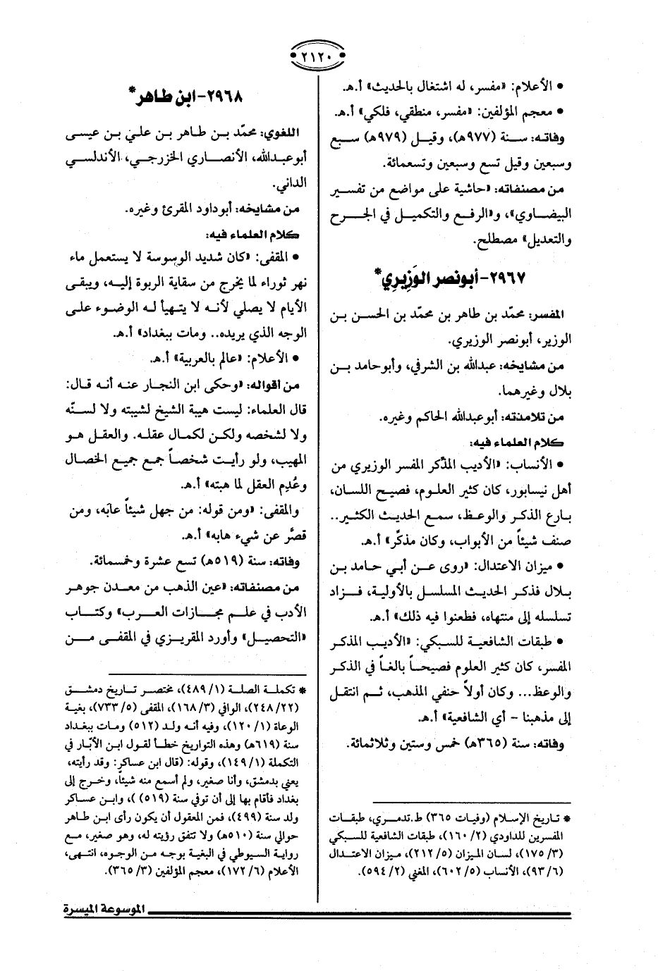 المفسر: محمّد بن طاهر بن محمّد بن الحسن بن الوزير، أبو نصر الوزيري.