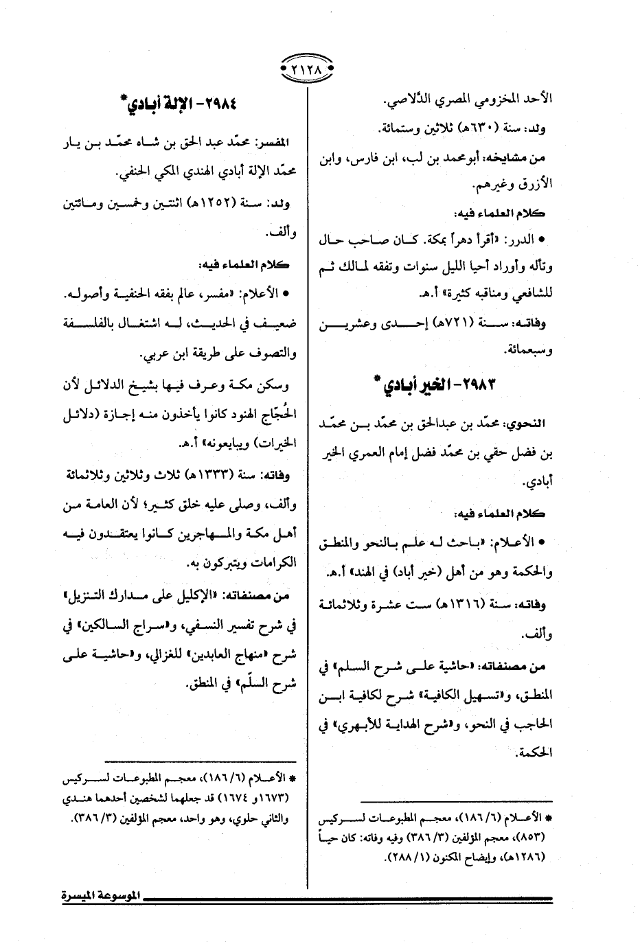 *الأعلام: "باحث له علم بالنحو والمنطق والحكمة وهو من أهل (خير أباد) في الهند" أ. هـ.