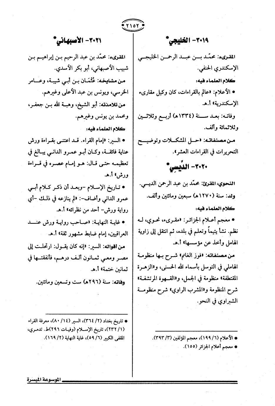 المقرئ: محمّد بن عبد الرحمن الخليجي الإسكندري الحنفي.