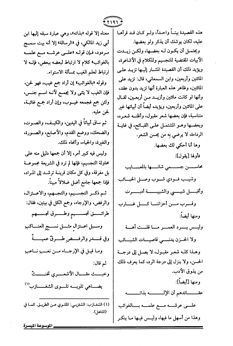 وخبث مقال الأشعري تخنثٌ ... يضاهي تلويه تلوى الشغازب (¬1)