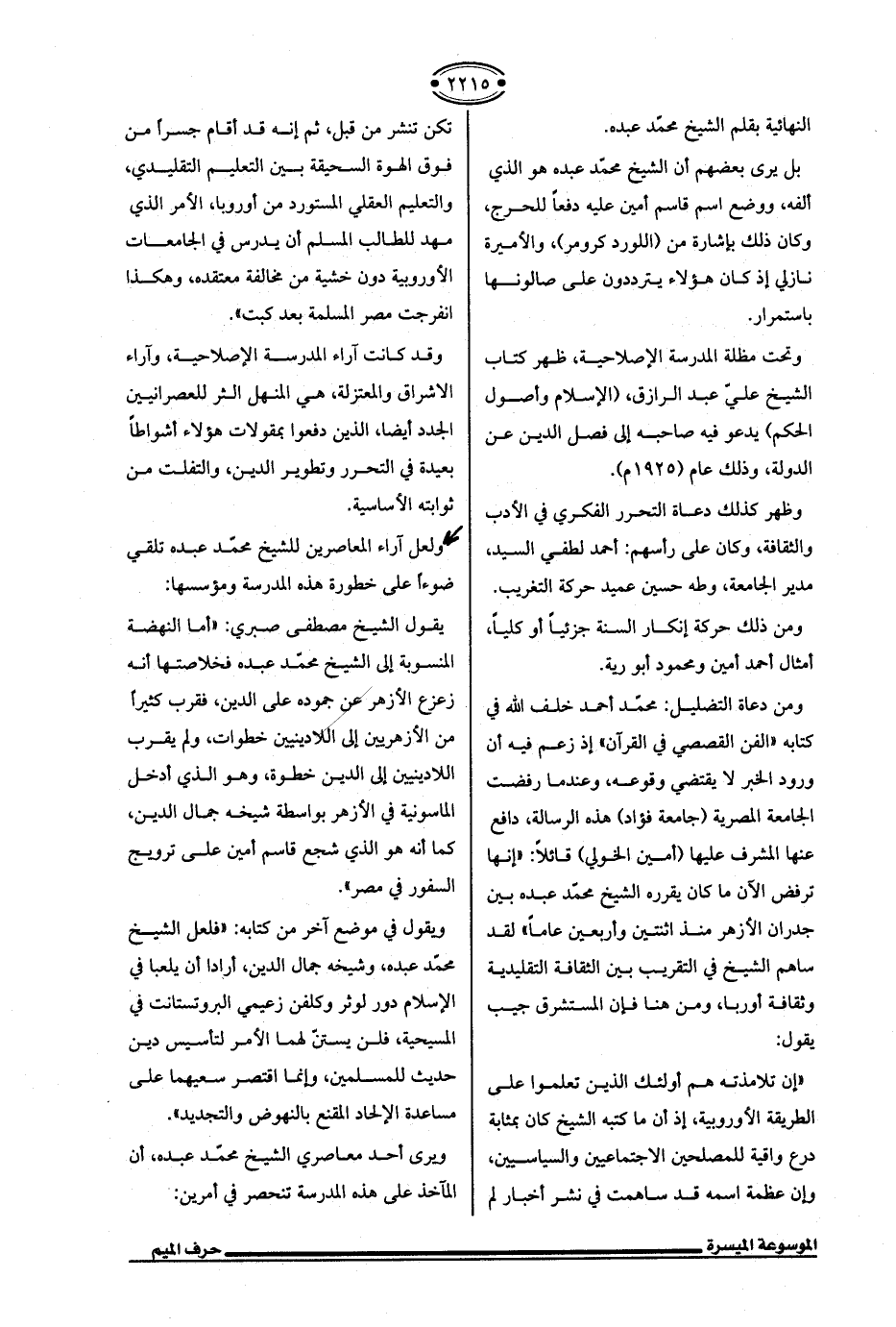 ولعل آراء المعاصرين للشيخ محمّد عبده تلقي ضوءًا على خطورة هذه المدرسة ومؤسسها: