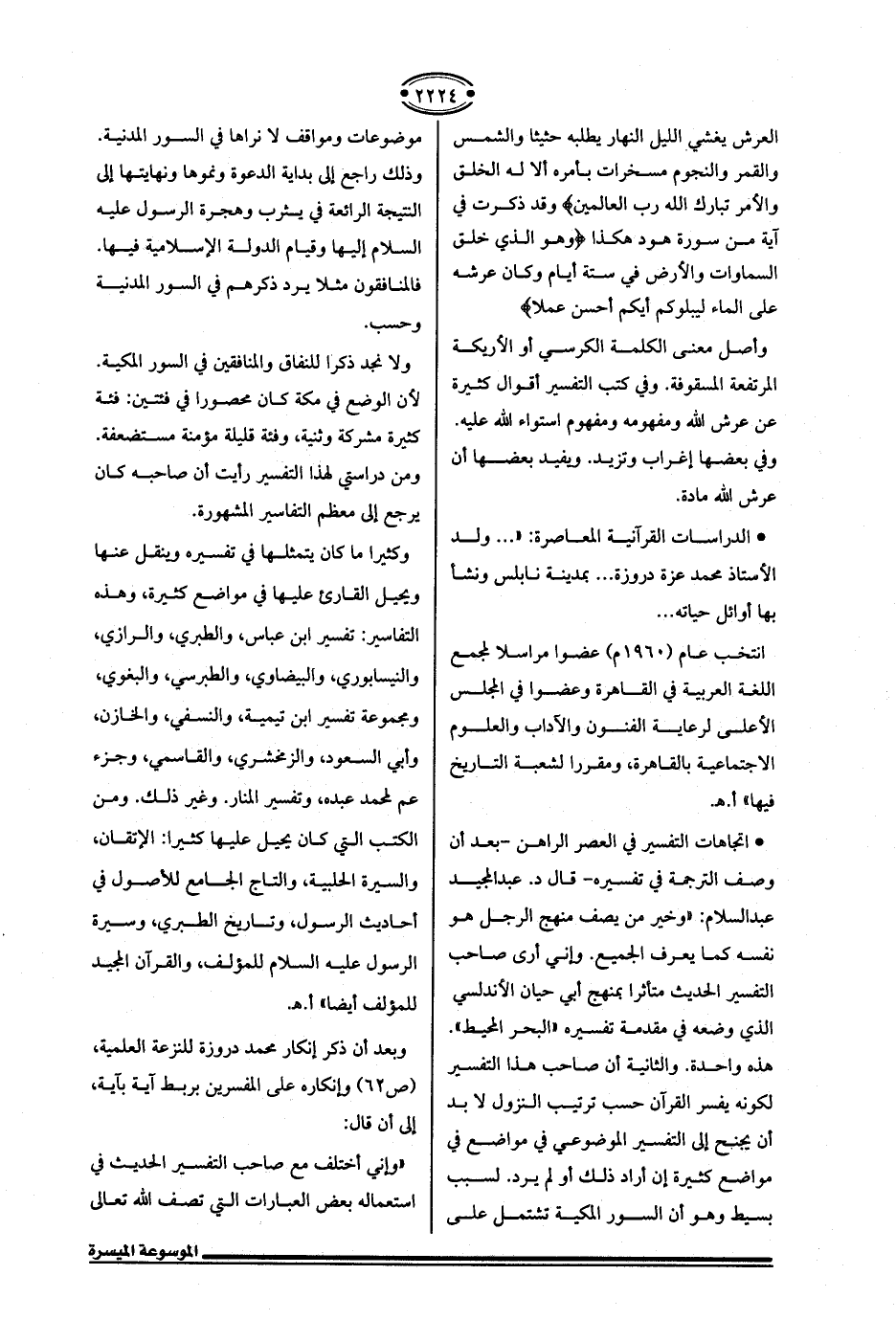 * الدراسات القرآنية المعاصرة: " ... ولد الأستاذ محمد عزة دروزة ... بمدينة نابلس ونشأ بها أوائل حياته ...