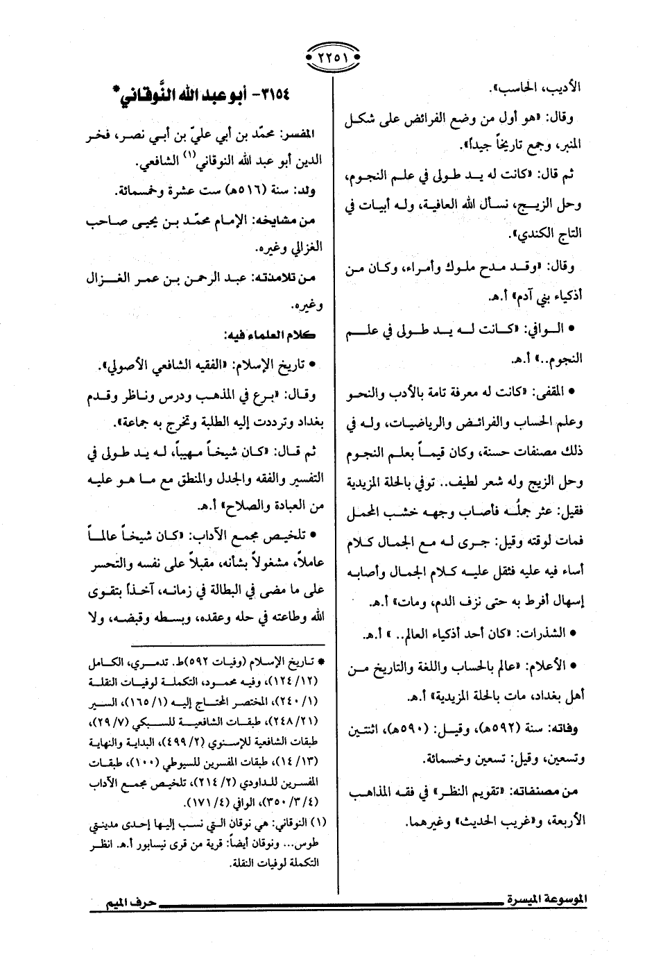 (¬1) النوقاني: هي نوقان التي نسب إليها إحدى مدينتي طوس ... ونوقان أيضًا: قرية من قرى نيسابور أ. هـ. انظر التكملة لوفيات النفلة.