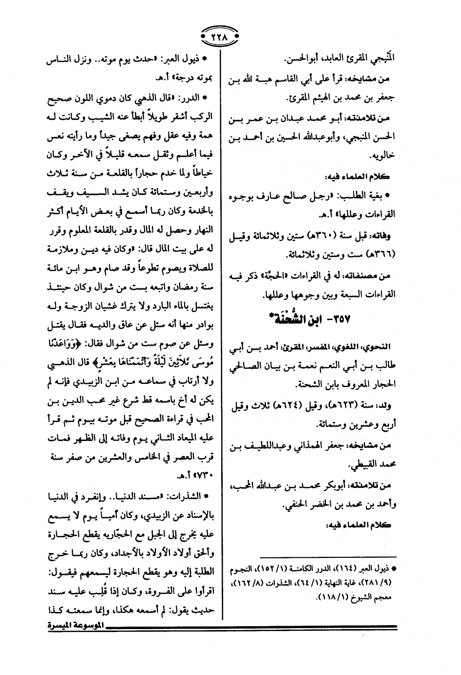 • بغية الطلب: "رجل صالح عارف بوجوه القراءات وعللها" أ. هـ.