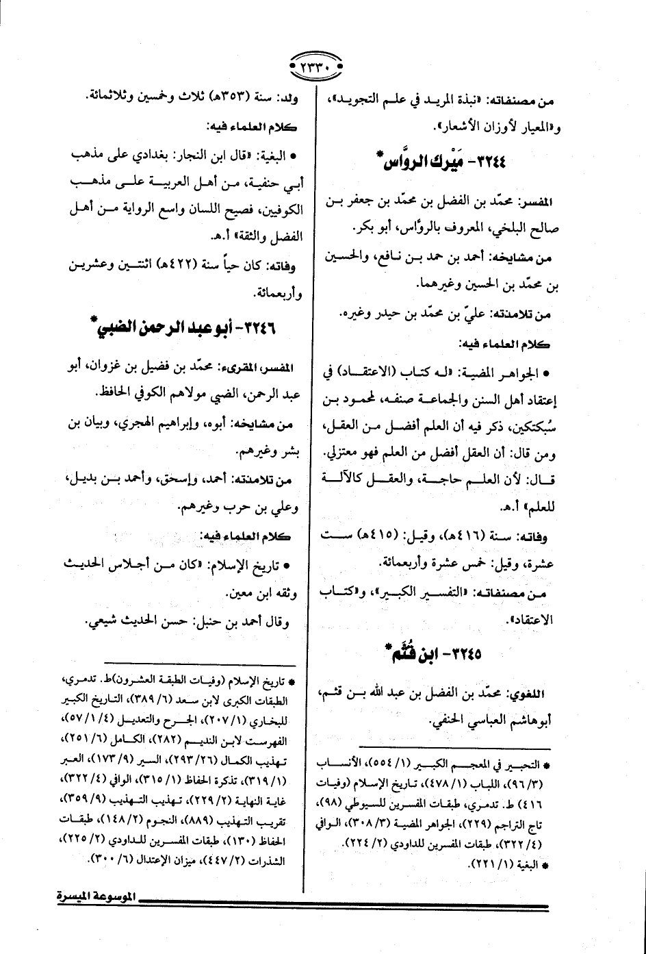 كتاب الموسوعة الميسرة في تراجم أئمة التفسير والإقراء والنحو واللغة (اسم الجزء: 3)
