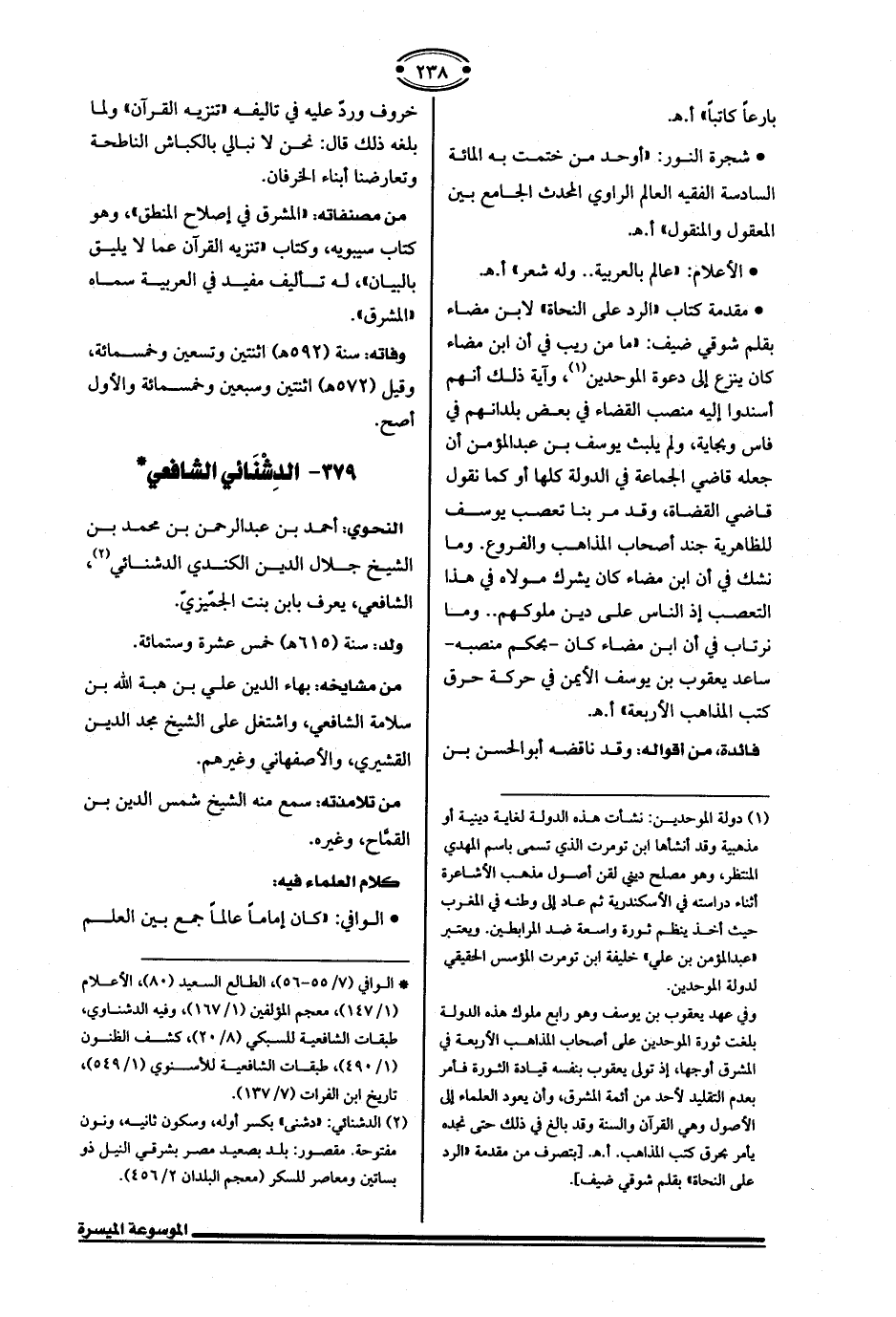 (¬2) الدشنائي: "دشنى" بكسر أوله، وسكون ثانيه، ونون مفتوحة. مقصور: بلد بصعيد مصر بشرقي النيل ذو بساتين ومعاصر للسكر (معجم البلدان 2/ 456).
