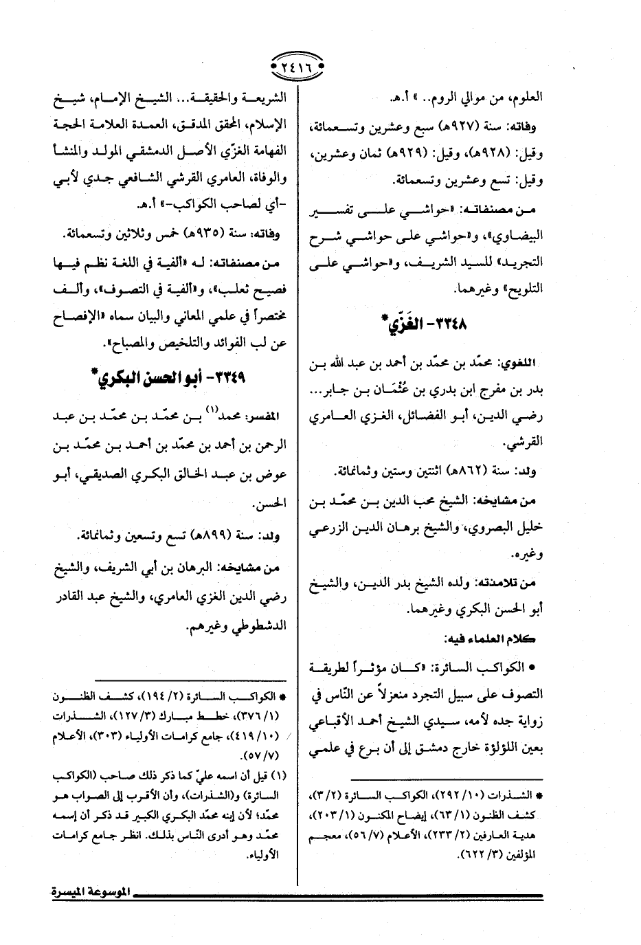 (¬1) قيل أن اسمه علي كما ذكر ذلك صاحب (الكواكب السائرة) و (الشذرات)، وأن الأقرب إلى الصواب هو محمّد؛ لأن ابنه محمّد البكري الكبير قد ذكر أن إسمه محمّد وهو أدرى الناس بذلك. انظر جامع كرامات الأولياء.