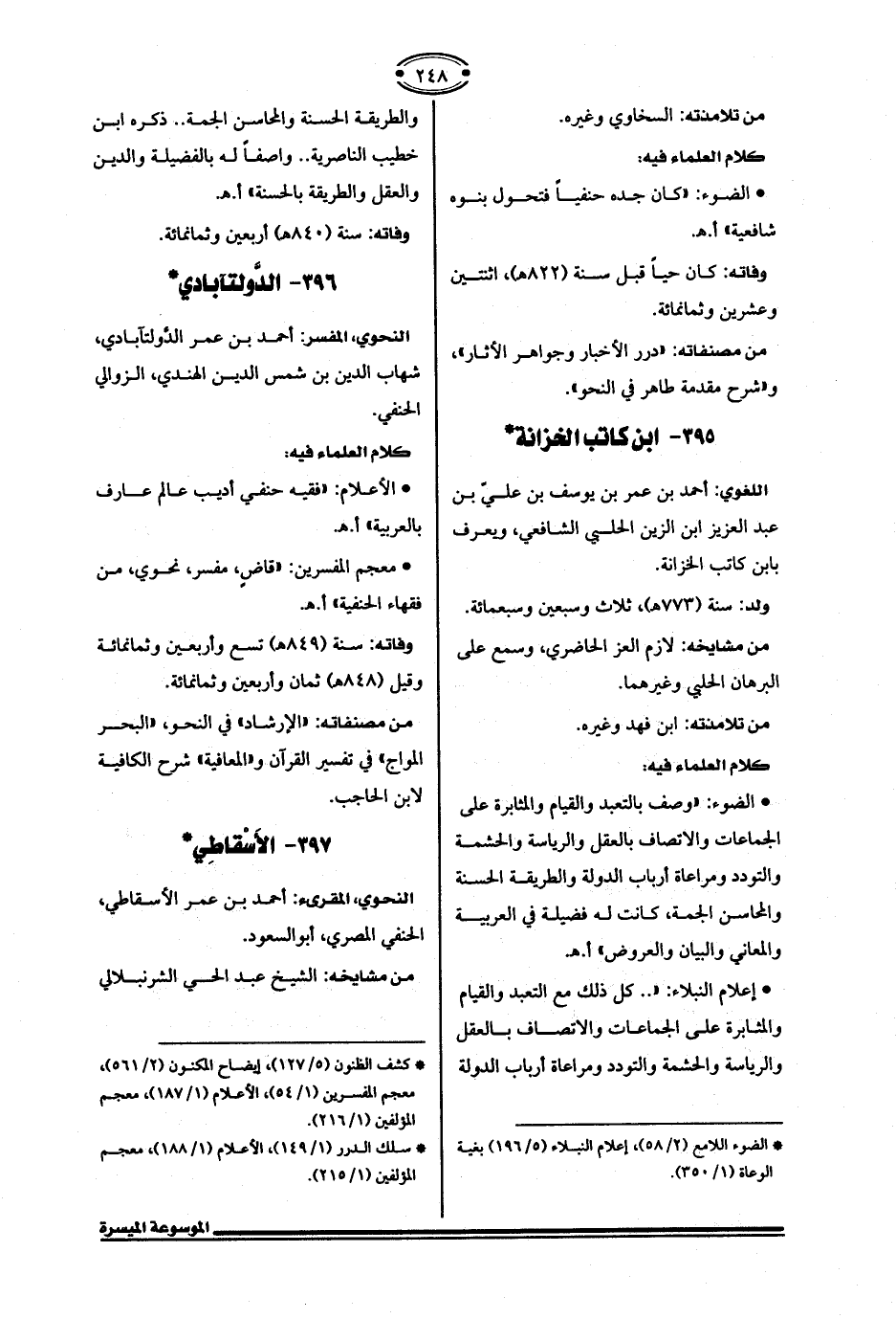 * الضوء اللامع (2/ 58)، إعلام النبلاء (5/ 196) بغية الوعاة (1/ 350).