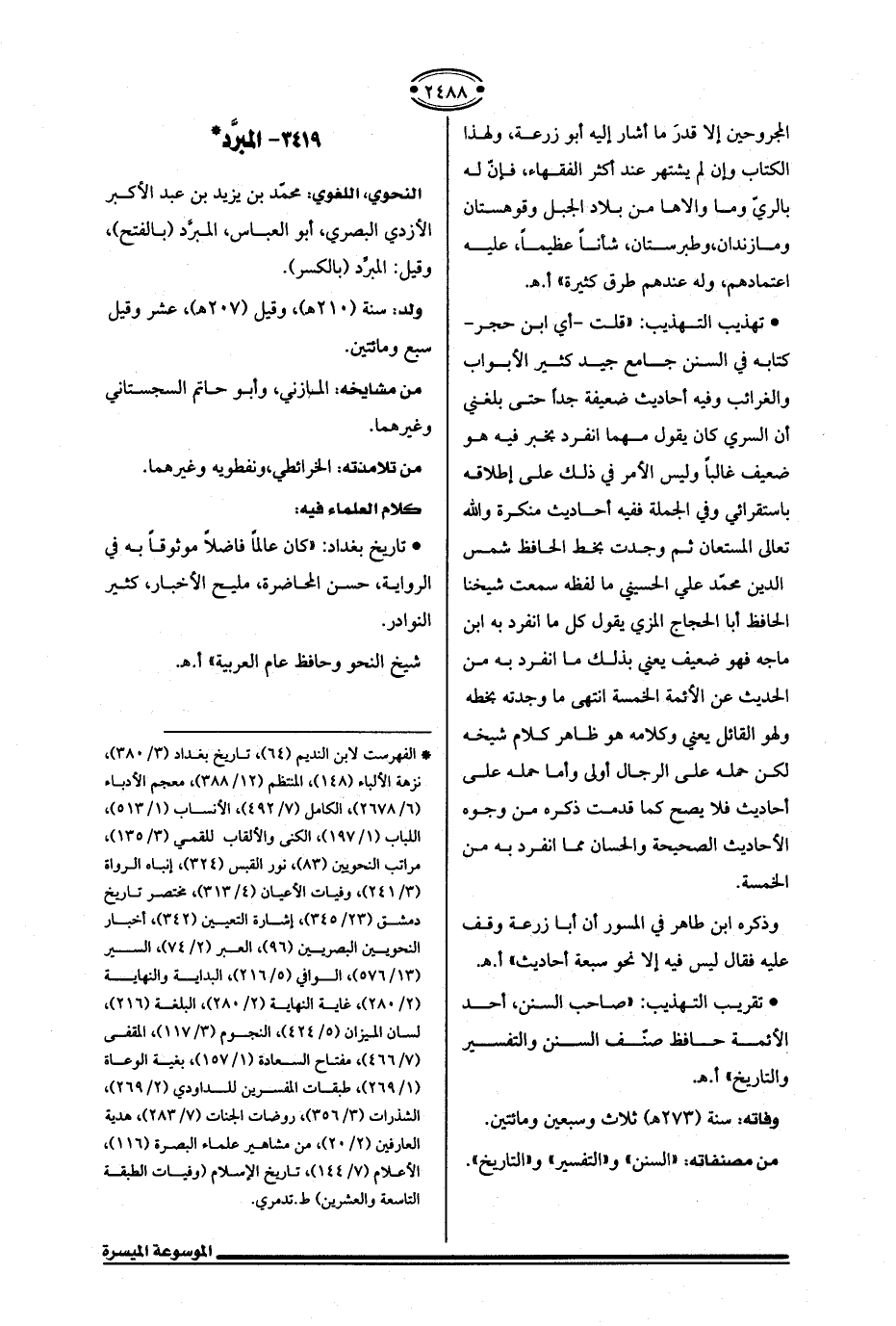 النحوي، اللغوي: محمّد بن يزيد بن عبد الأكبر الأزدي البصري، أَبو العباس، المبرَّد (بالفتح)، وقيل: المبرِّد (بالكسر).