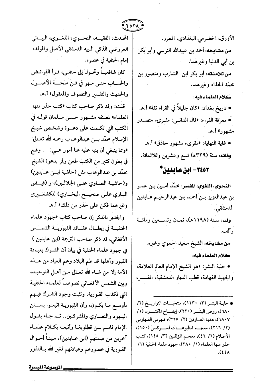 النحوي، اللغوي، المفسر: محمّد أمين بن عمر بن عبد العزيز بن أحمد بن عبد الرحيم عابدين الدمشقي.
