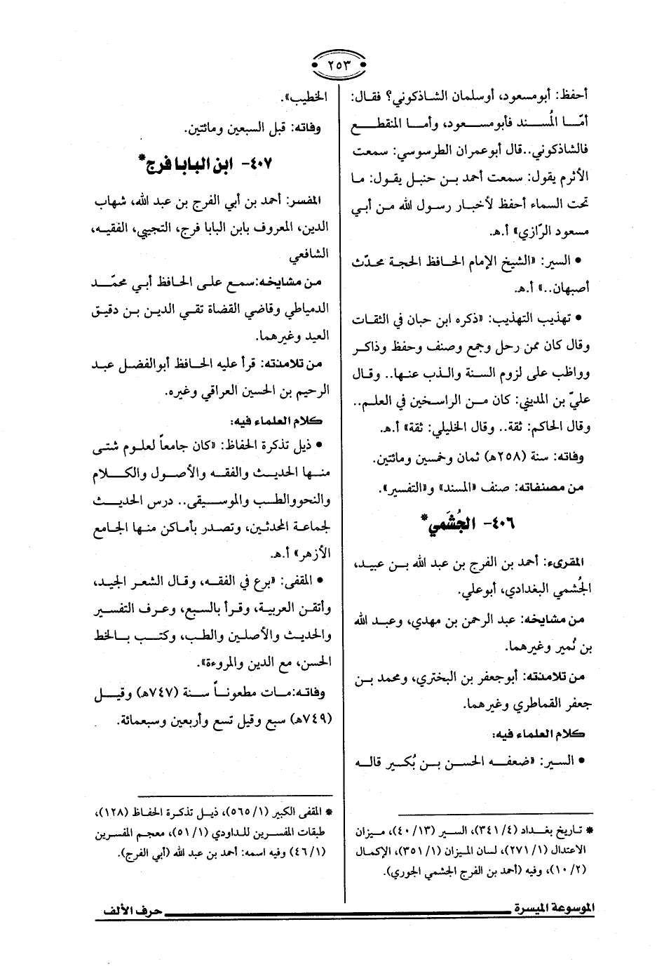 * تاريخ بغداد (4/ 341)، السير (13/ 40)، ميزان الاعتدال (1/ 271)، لسان الميزان (1/ 351)، الإكمال (2/ 10)، وفيه (أحمد بن الفرج الجشمي الجوري).