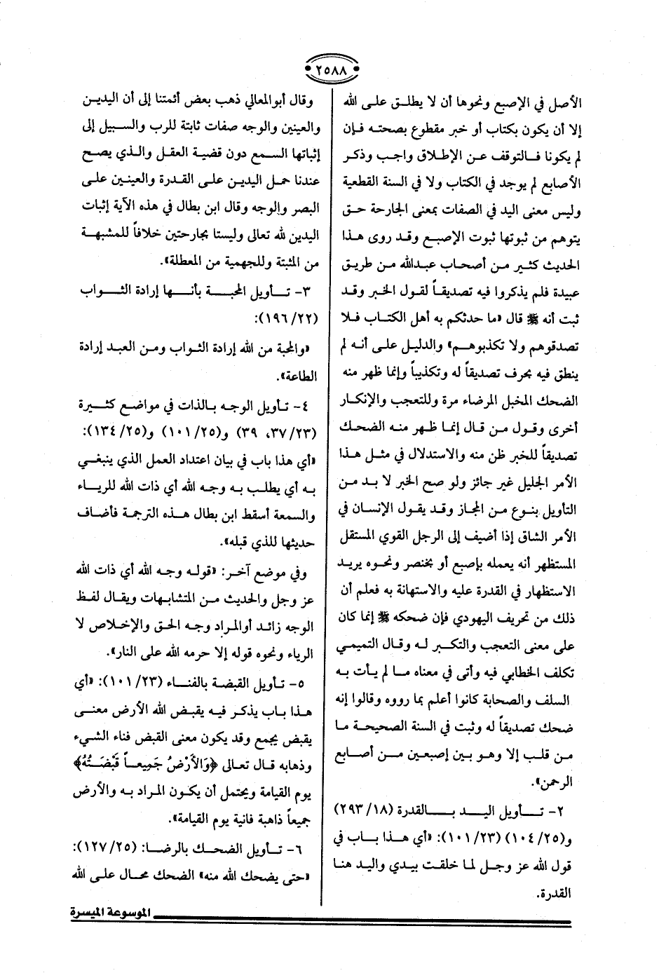 2 - تأويل اليد بالقدرة (18/ 293) و (25/ 104) (23/ 101): "أي هذا باب في قول الله عزَّ وجلَّ لما خلقت بيدي واليد هنا القدرة.
