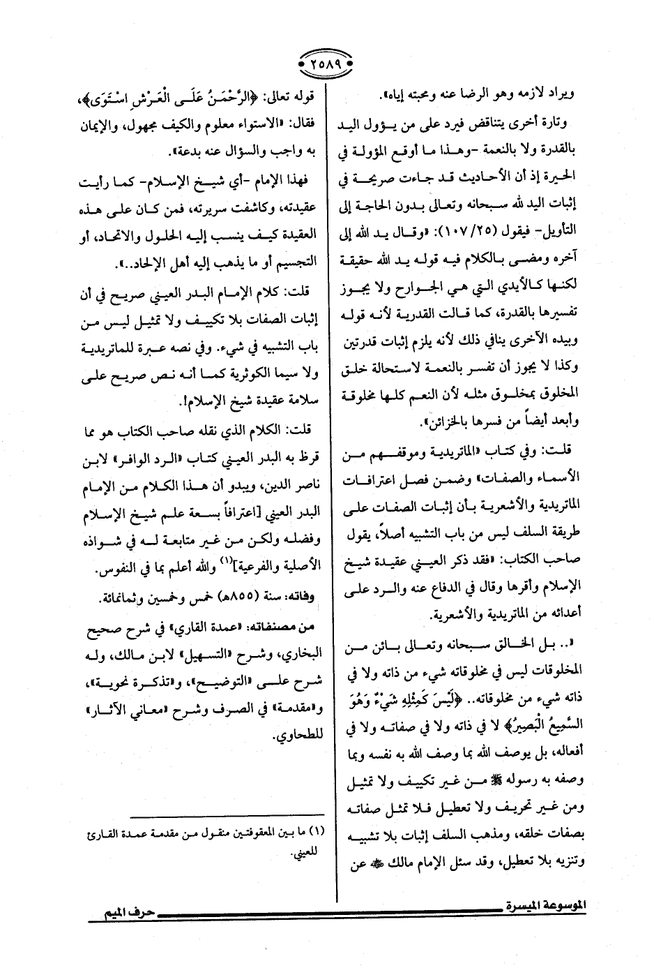 قلت: كلام الإمام البدر العيني صريح في أن إثبات الصفات بلا تكييف ولا تمثيل ليس من باب التشبيه في شيء. وفي نصه عبرة للماتريدية ولا سيما الكوثرية كما أنه نص صريح على سلامة عقيدة شيخ الإسلام! .