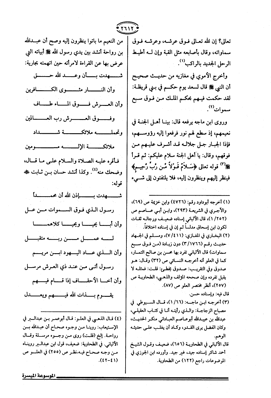 (¬4) قال الذهبي في العلو: قال أبو عمر بن عبد البر في الإستيعاب: روينا من وجوه صحاح أن عبد الله بن رواحة. إلخ (قلت) روى من وجوه مرسلة وقال الألباني. في الطحاوية: ضعيف، قول ابن عبد البر رويناه من وجه صحاح فيه، نظر ص (255) في العلو ص (41 - 42).