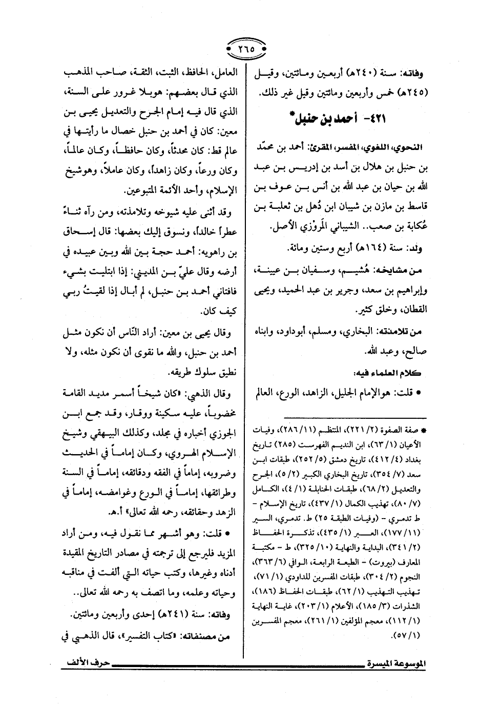 • قلت: هو الإمام الجليل، الزاهد، الورع، العالم العامل، الحافظ، المثبت، الثقة، صاحب المذهب الذي قال بعضهم: هوبلا غرور على السنة، الذي قال فيه إمام الجرح والتعديل يحيى بن معين: كان في أحمد بن حنبل خصال ما رأيتها في عالم قط: كان محدثًا، وكان حافظًا، وكان عالمًا، وكان ورعًا، وكان زاهدًا، وكان عاملًا، وهو شيخ الإِسلام، وأحد الأئمة المتبوعين.