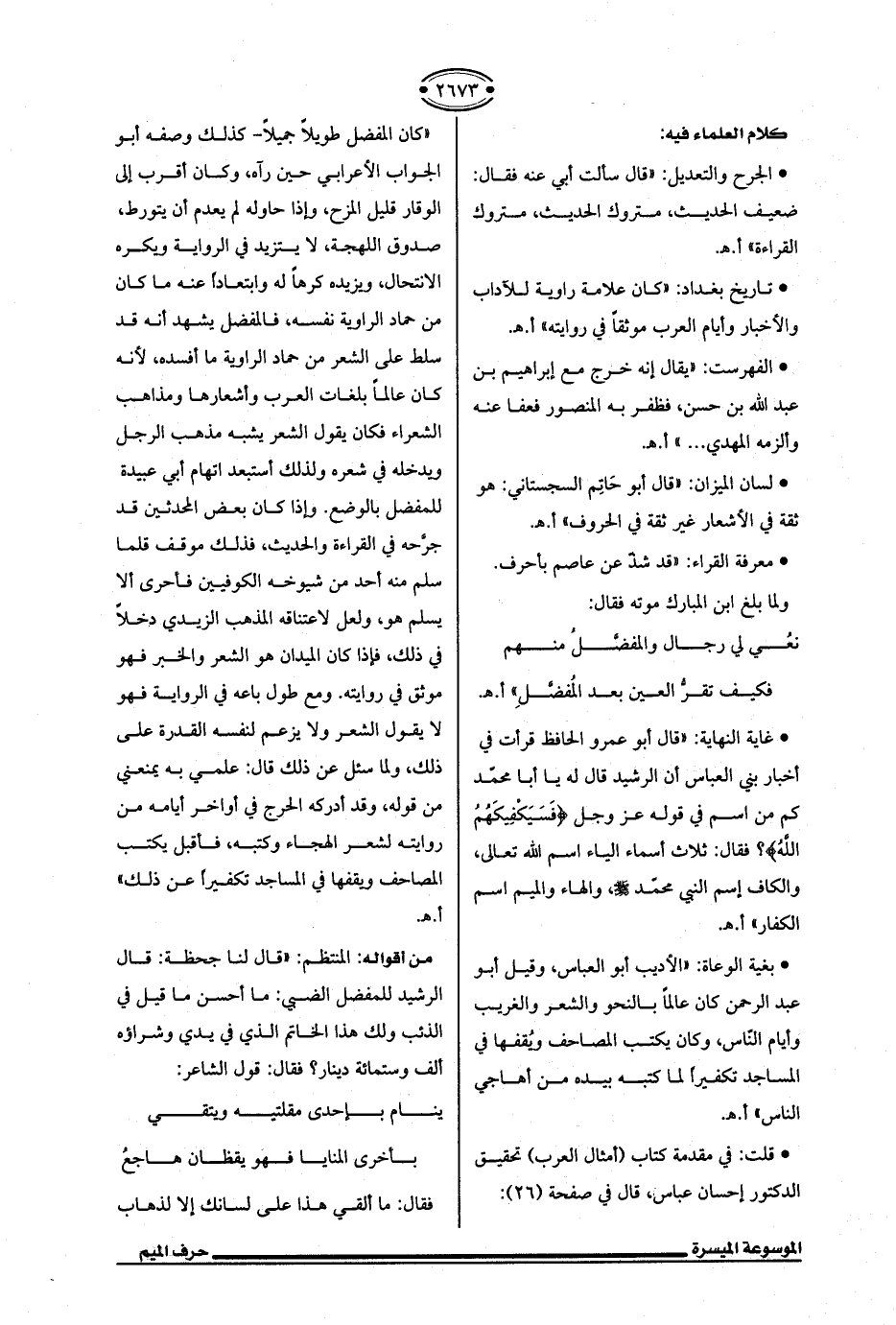 • قلت: في مقدمة كتاب (أمثال العرب) تحقيق الدكتور إحسان عباس، قال في صفحة (26):