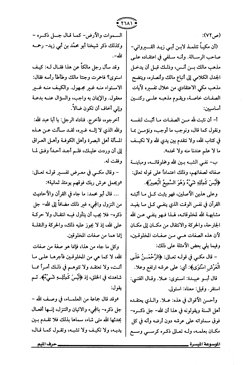 - قال مكي في قوله تعالى: {الرَّحْمَنُ عَلَى الْعَرْشِ اسْتَوَى}: "قوله: على عرشه ارتفع وعلا.
