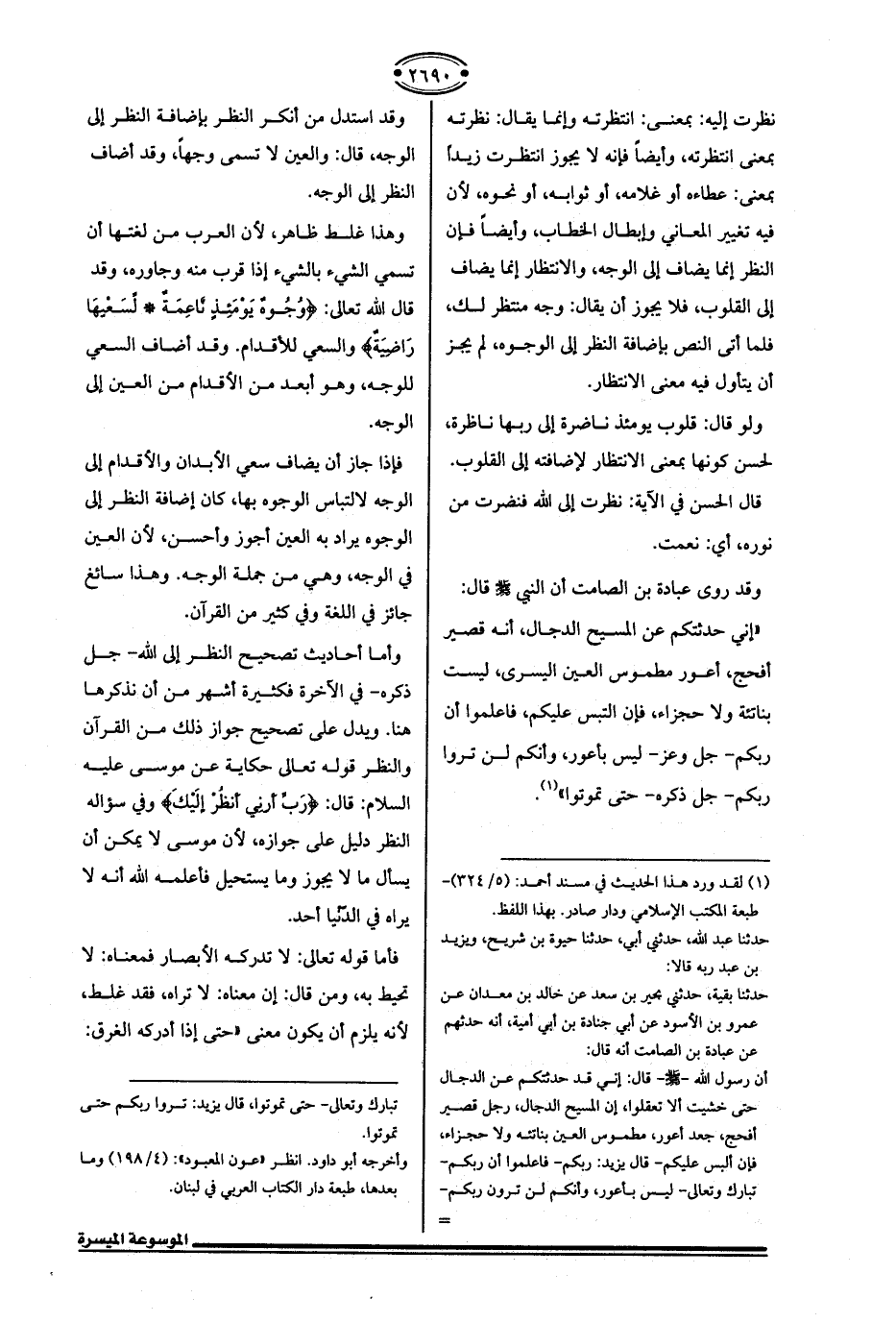 نظرت إليه: بمعنى: انتظرته وإنما يقال: نظرته بمعنى انتظرته، وأيضًا فإنه لا يجوز انتظرت زيدًا بمعنى: عطاءه أو غلامه، أو ثوابه، أو نحوه؛ لأن فيه تغيير المعاني وإبطال الخطاب، وأيضًا فإن النظر إنما يضاف إلى الوجه، والانتظار إنما يضاف إلى القلوب، فلا يجوز أن يقال: وجه منتظر لك، فلما أتى النص بإضافة النظر إلى الوجوه، لم يجز أن يتأول فيه معنى الانتظار.