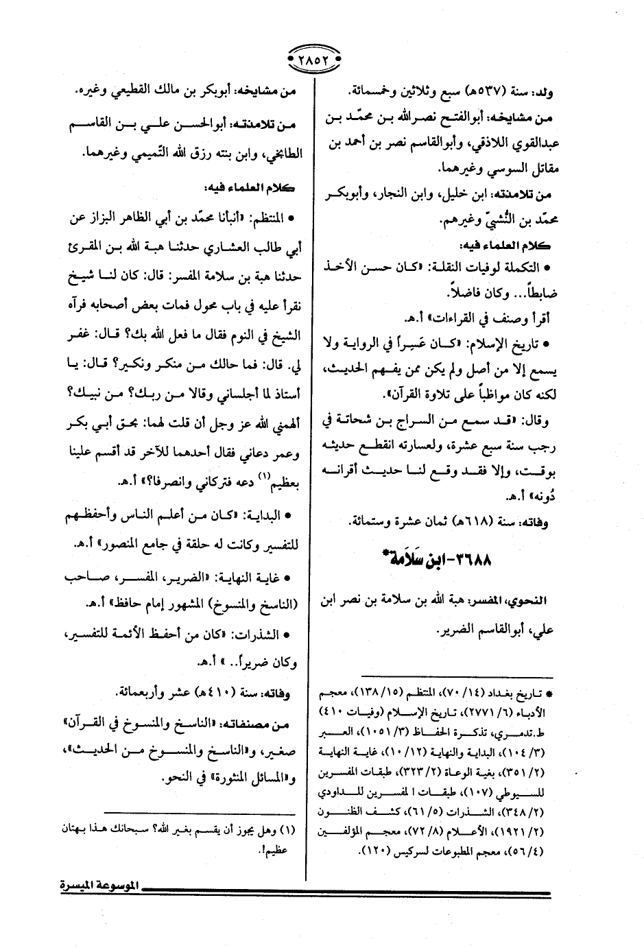 النحوي، المفسر: هبة الله بن سلامة بن نصر بن علي، أبو القاسم الضرير.
