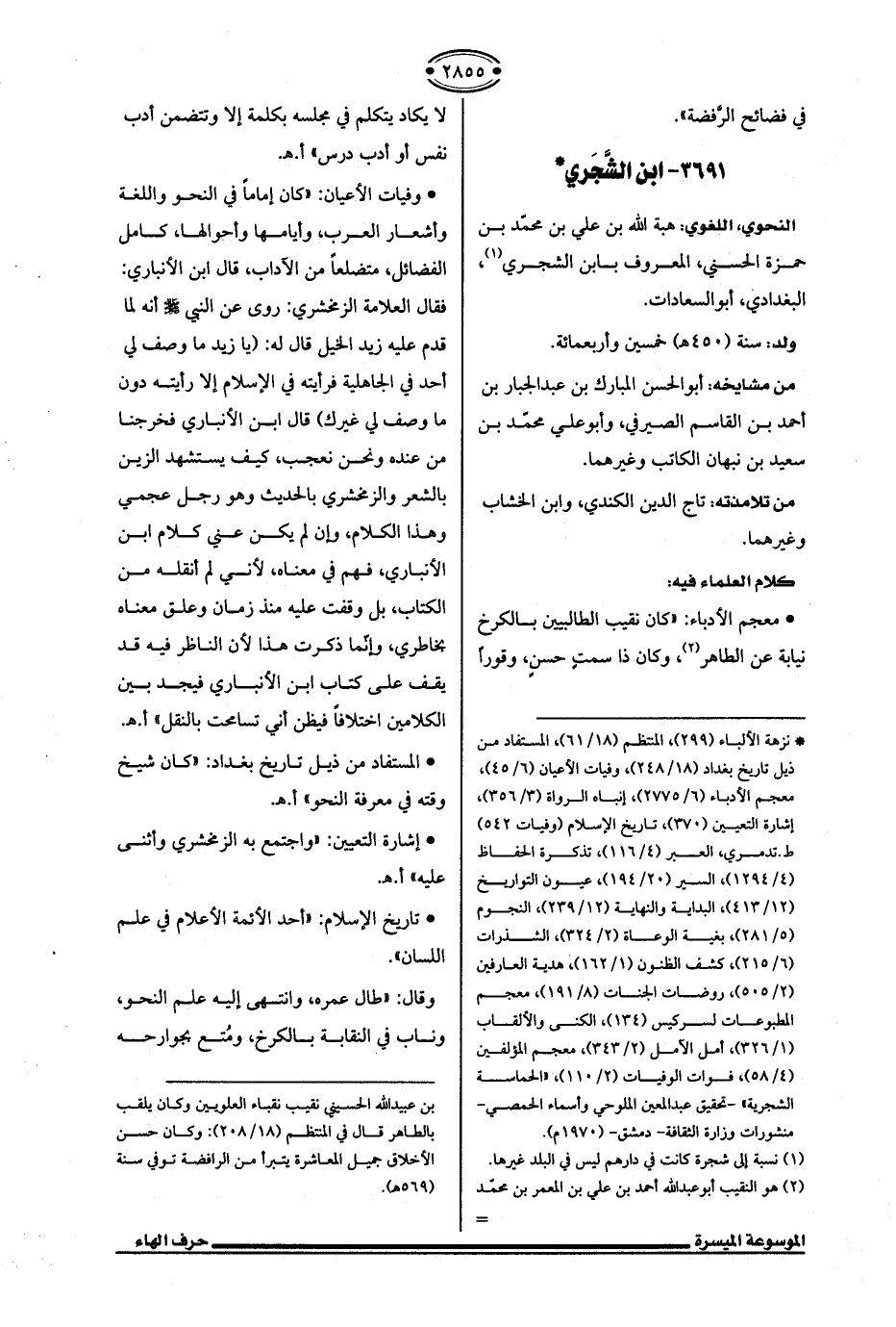 النحوي، اللغوي: هبة الله بن علي بن محمّد بن حمزة الحسني، المعروف بابن الشجري (¬1)،