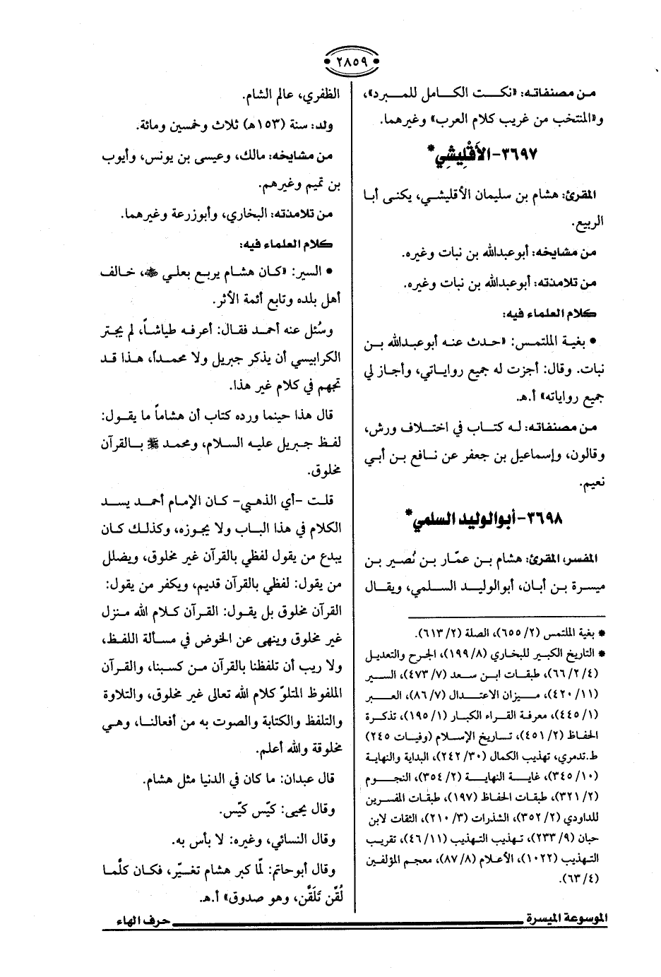 المفسر، المقرئ: هشام بن عمّار بن نُصير بن ميسرة بن أبان، أبو الوليد السلمي، ويقال الظفري، عالم الشام.