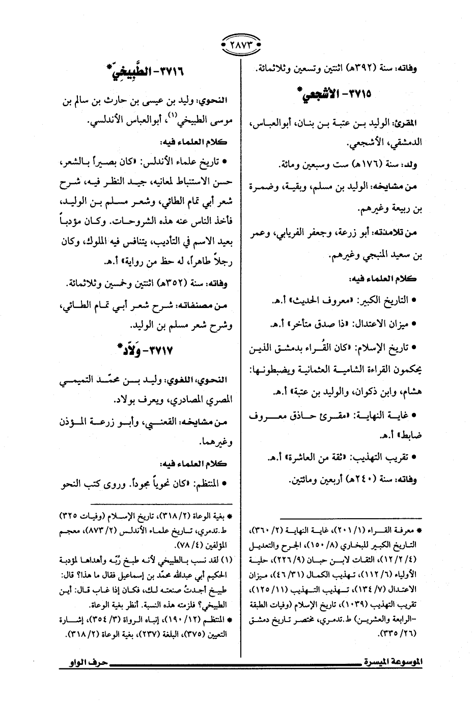 * تاريخ الإسلام: "كان القُراء بدمشق الذين يحكمون القراءة الشامية العثمانية ويضبطونها: هشام، وابن ذكوان، والوليد بن عتبة" أ. هـ.