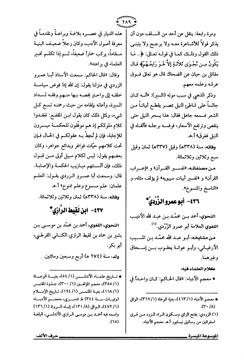 (¬1) الزردي: بفتح الزاي وسكون الراء الزرد من قرى اسفرائين من رساتيق نيسابور أ. هـ. معجم الأدباء.