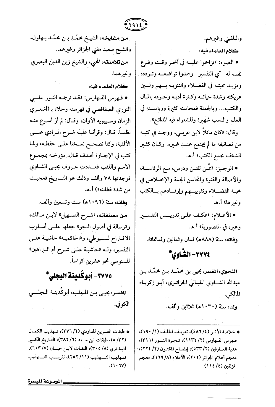 النحوي، المفسر: يحيى بن محمّد بن محمّد بن عبد الله الشاوي الملياني الجزائري، أبو زكرياء المالكي.