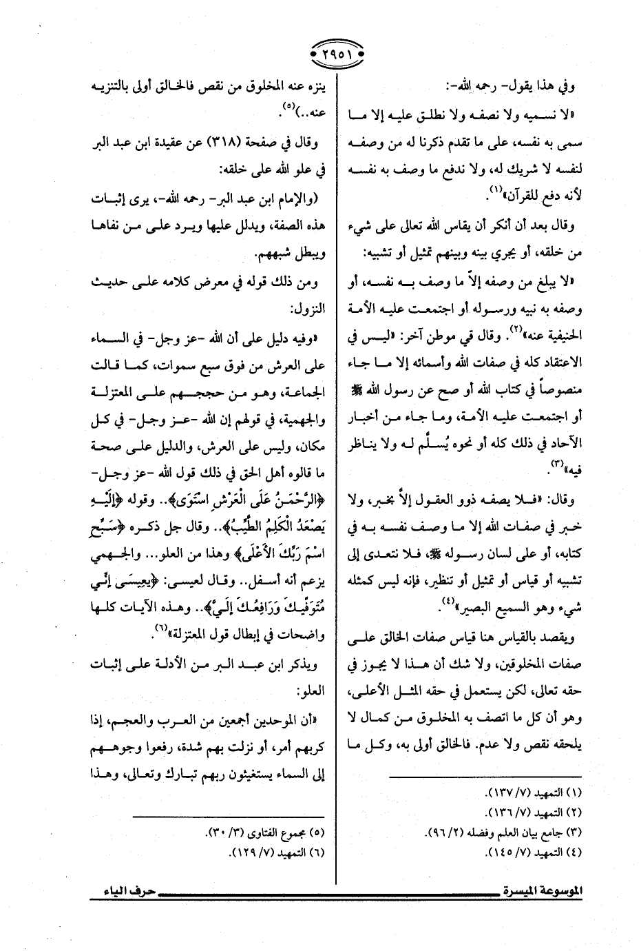 (والإمام ابن عبد البر -رحمه الله-، يرى إثبات هذه الصفة، ويدلل عليها ويرد على من نفاها ويبطل شبههم.