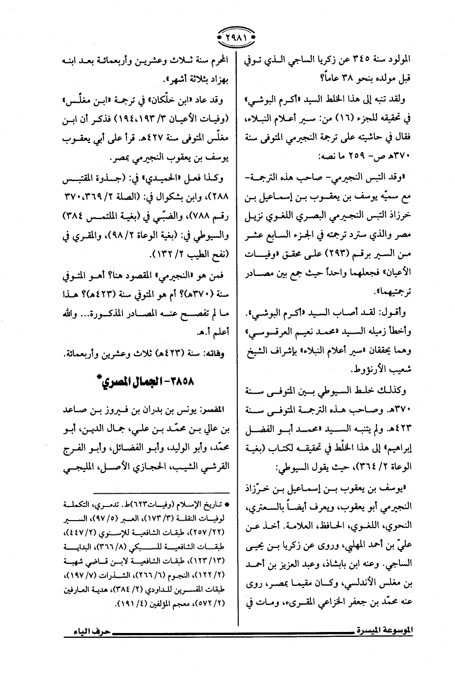 ولقد تنبه إلى هذا الخلط السيد "أكرم البوشي" في تحقيقه للجزء (16) من: سير أعلام النبلاء، فقال في حاشيته على ترجمة النجيرمي المتوفى سنة 370 هـ ص- 259 ما نصه: