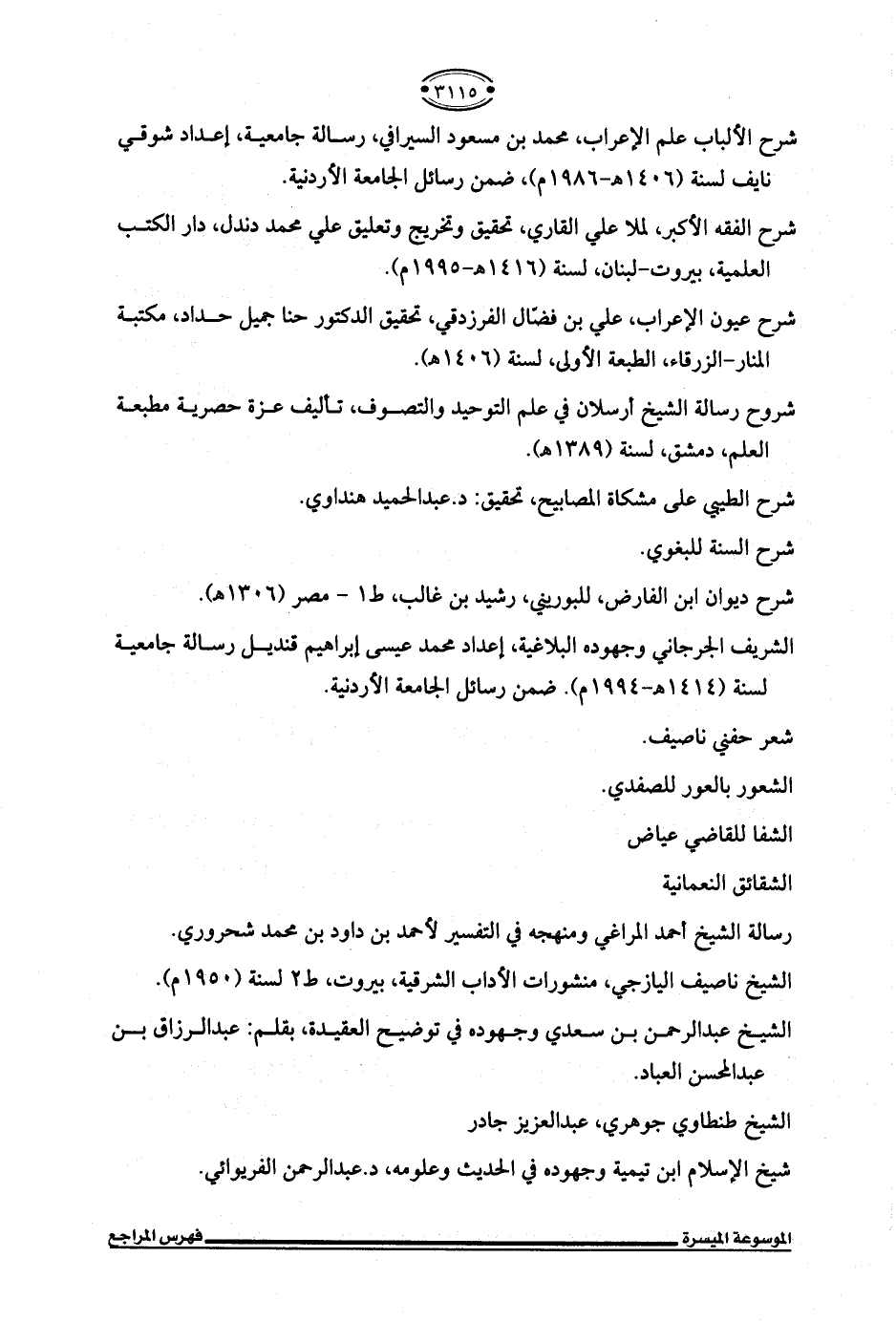 شرح عيون الإعراب، علي بن فضال الفرزدقي، تحقيق الدكتور حنا جميل حداد، مكتبة المنار - الزرقاء، الطبعة الأولى، لسنة (1406 هـ).