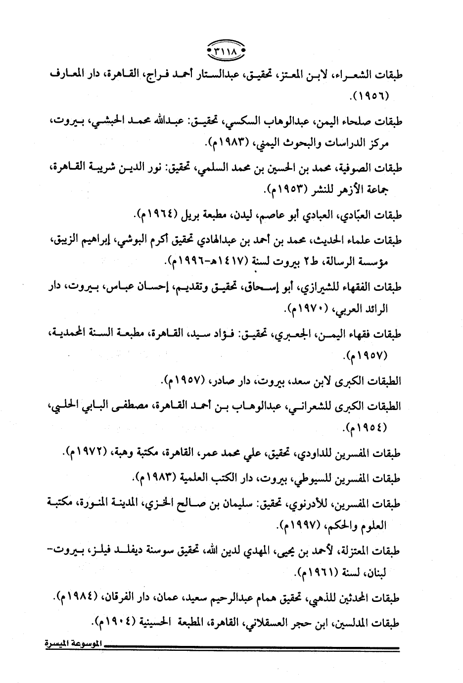 طبقات المدلسين، ابن حجر العسقلاني، القاهرة، المطبعة الحسينية (1904 م).