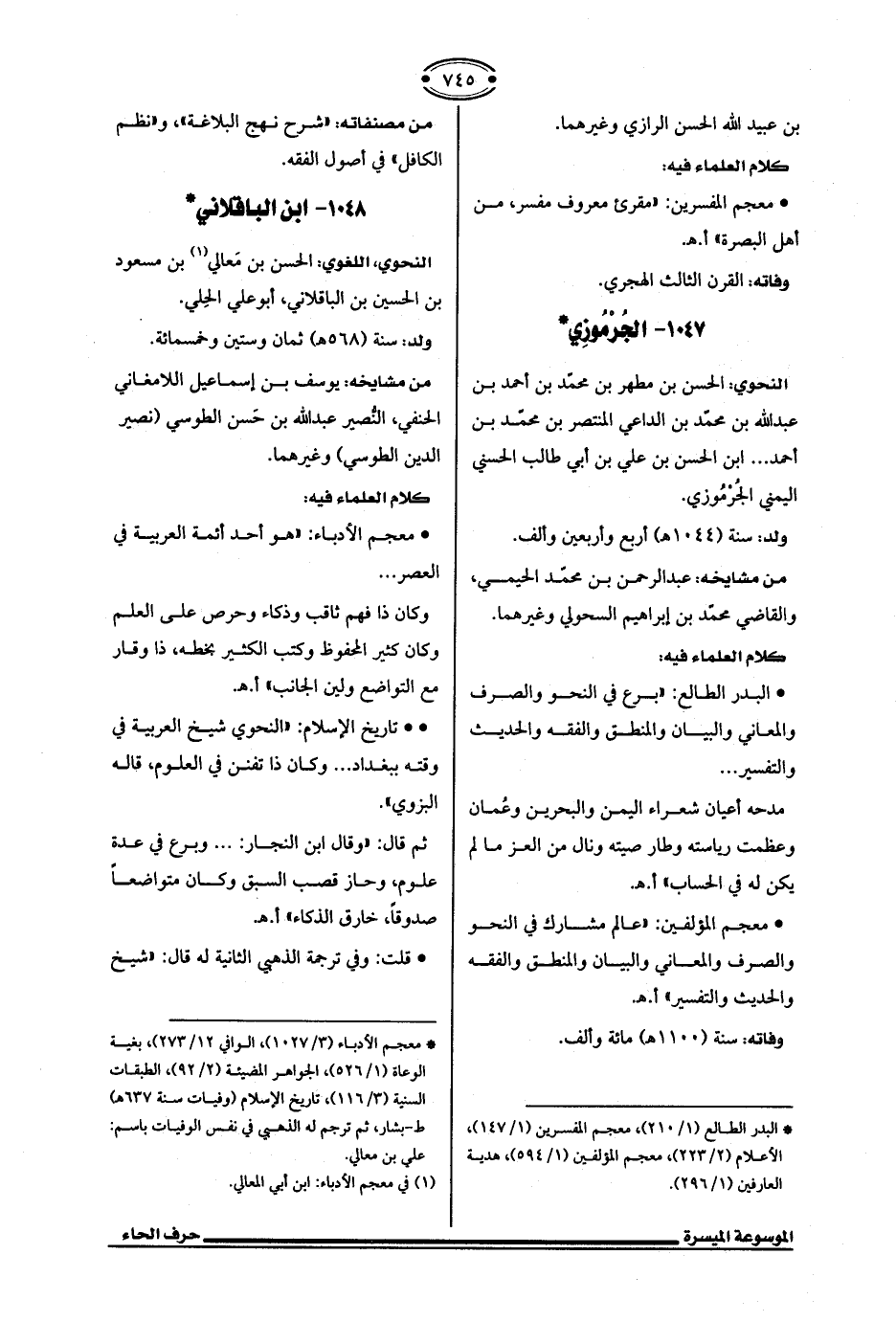 • معجم الأدباء: "هو أحد أئمة العربية في العصر ...