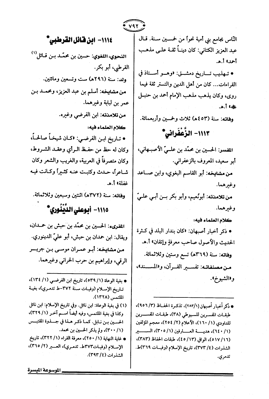 كتاب الموسوعة الميسرة في تراجم أئمة التفسير والإقراء والنحو واللغة (اسم الجزء: 1)