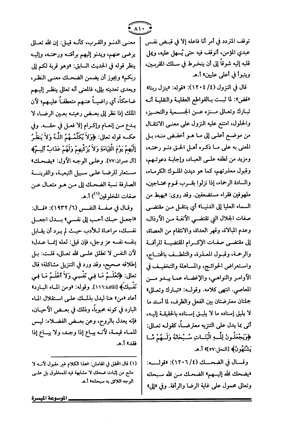 (¬1) قال المحقق في الهامش: "هذا الكلام غير مقبول لأنه لا مانع من إثبات ضحك لا مشابهة فيه للمخلوق بل على الوجه اللائق به سبحانه" أ. هـ.
