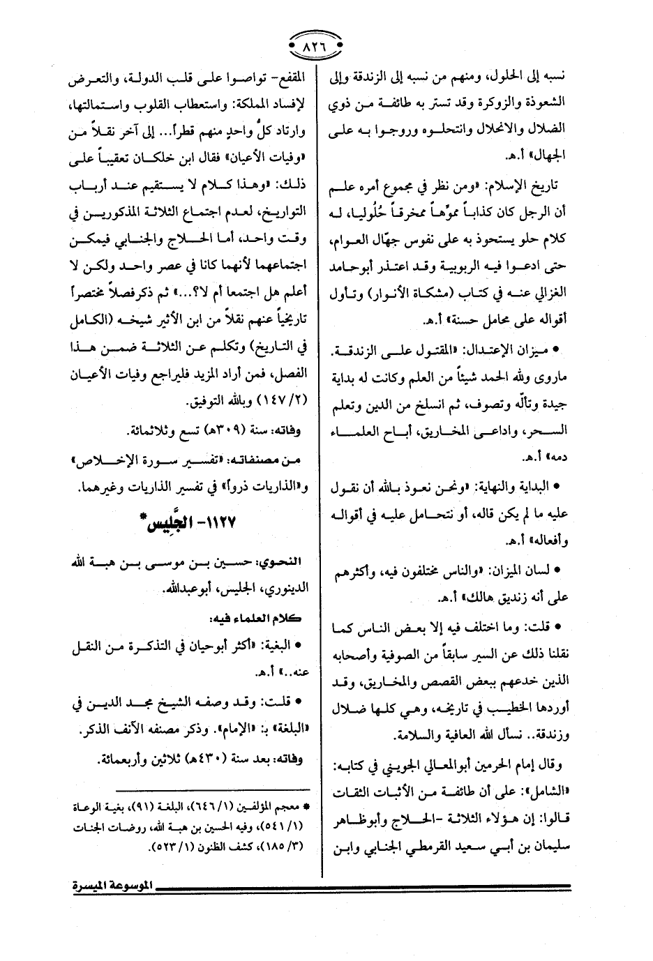 وقال إمام الحرمين أبو المعالي الجويني في كتابه: "الشامل": على أن طائفة من الأثبات الثقات قالوا: إن هؤلاء الثلاثة -الحلاج وأبو ظاهر سليمان بن أبي سعيد القرمطي الجنابي وابن المقفع- تواصوا على قلب الدولة، والتعرض لإفساد المملكة: واستعطاب القلوب واستمالتها، وارتاد كلُّ واحدٍ منهم قطرًا ... إلى آخر نقلًا من "وفيات الأعيان" فقال ابن خلكان تعقيبًا على ذلك: "وهذا كلام لا يستقيم عند أرباب التواريخ، لعدم اجتماع الثلاثة المذكورين في وقت واحد، أما الحلاج والجنابي فيمكن اجتماعهما لأنهما كانا في عصر واحد ولكن لا أعلم هل اجتمعا أم لا؟ ... " ثم ذكر فصلًا مختصرًا تاريخيًا عنهم نقلًا من ابن الأثير شيخه (الكامل في التاريخ) وتكلم عن الثلاثة ضمن هذا الفصل, فمن أراد المزيد فليراجع وفيات الأعيان (2/ 147) وبالله التوفيق.