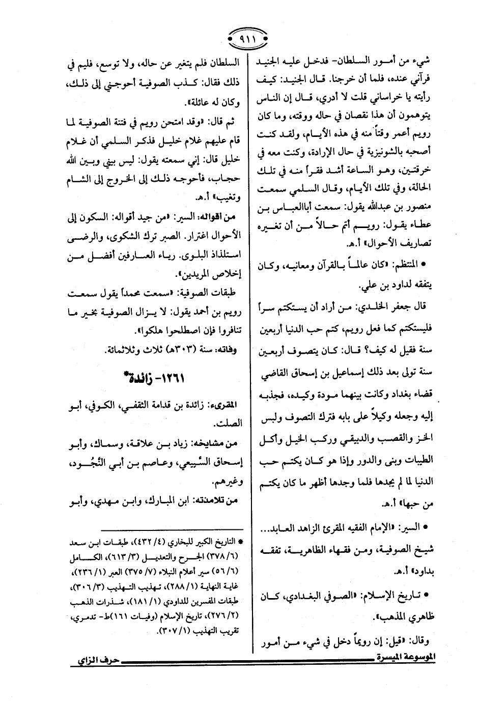 * تاريخ الإسلام: "الصوفي البغدادي، كان ظاهري المذهب".