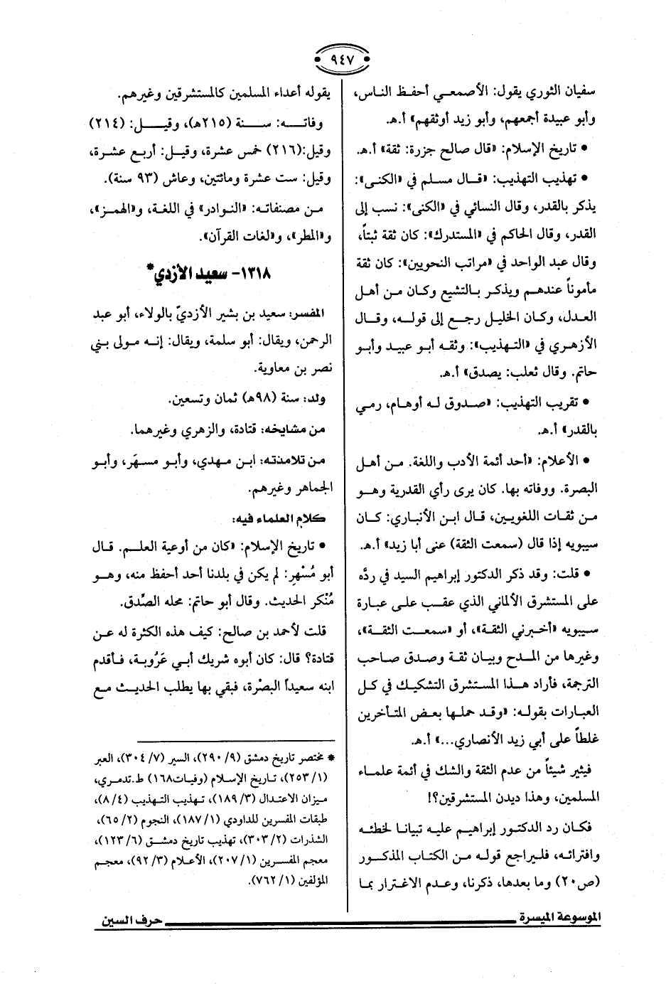 • قلت: وقد ذكر الدكتور إبراهيم السيد في ردِّه على المستشرق الألماني الذي عقب على عبارة سيبويه "أخبرني الثقة"، أو "سمعت الثقة"، وغيرها من المدح وبيان ثقة وصدق صاحب الترجمة، فأراد هذا المستشرق التشكيك في كل العبارات بقوله: "وقد حملها بعض المتأخرين غلطًا على أبي زيد الأنصاري ... " أ. هـ.