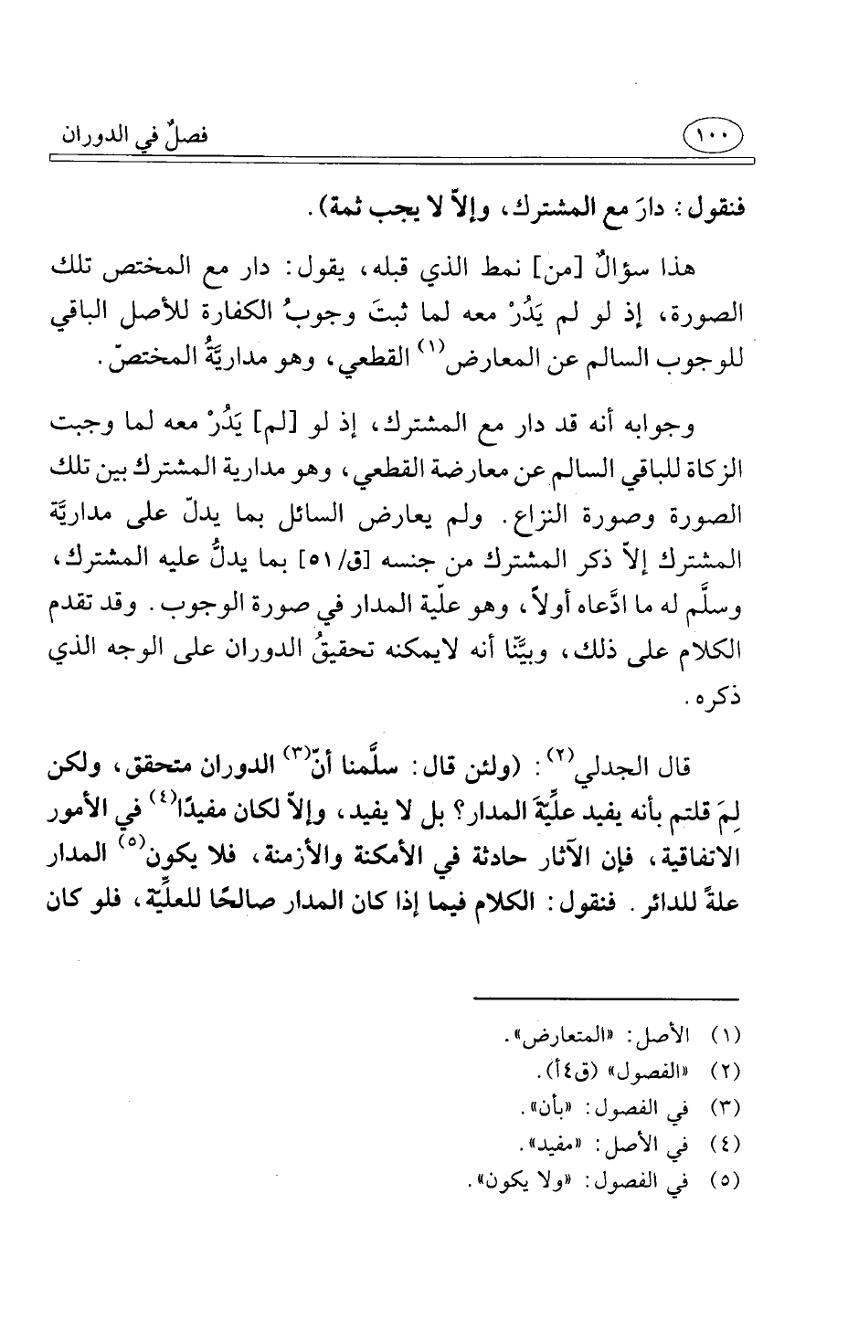 وجوابه أنه قد دار مع المشترك إذ لو لم يَدُرْ معه لما وجبت الزكاة للباقي السالم عن معارضة القطعي وهو مدارية المشترك بين تلك الصورة وصورة النزاع ولم يعارض السائل بما يدلّ على مداريَّة المشترك إلاّ ذكر المشترك وسلَّم له ما ادَّعاه أولاً وهو علّية المدار في صورة الوجوب وقد تقدم الكلام على ذلك وبيَّنّا أنه لا يمكنه تحقيقُ الدوران على الوجه الذي ذكره