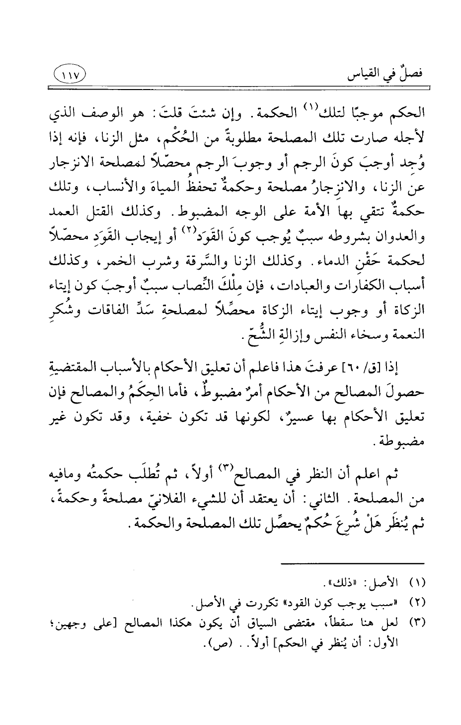 ثم اعلم أن النظر في المصالح أولاً ثم تُطلَب حكمتُه وما فيه من المصلحة الثاني أن يعتقد أن للشيء الفلانيّ مصلحةً وحكمةً ثم يُنظَر هَلْ شُرِعَ حُكمٌ يحصِّل تلك المصلحة والحكمة