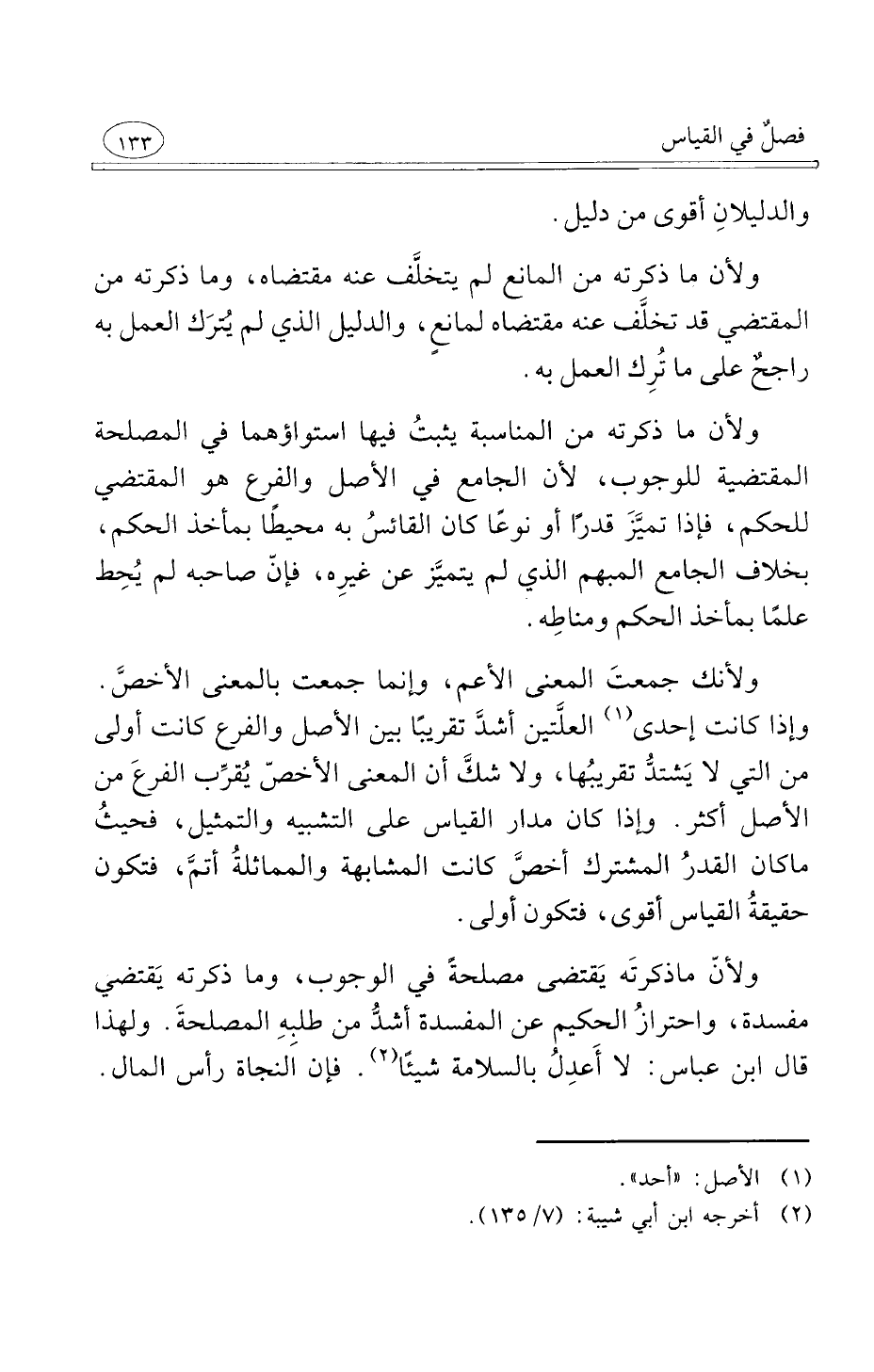 ولآنّ ما ذكرتَه يَقتضى مصلحةَ في الوجوب وما ذكرته يَقتضي مفسدة واحترازُ الحكيم عن المفسدة أشدُّ من طلبِهِ المصلحة ولهذا قال ابن عباس لا أَعدِلُ بالسلامة شيئًا فإن النجاة رأس المال