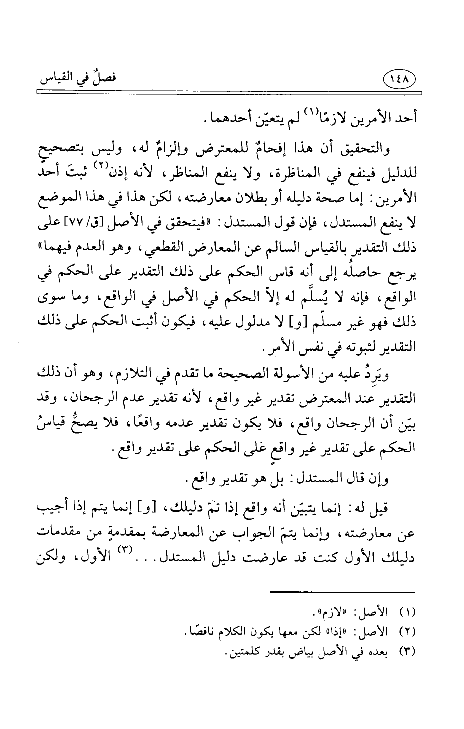 ويَرِدُ عليه من الأسولة الصحيحة ما تقدم في التلازم وهو أن ذلك التقدير عند المعترض تقدير غير واقع لأنه تقدير عدم الرجحان وقد بيّن أن الرجحان واقع فلا يكون تقدير عدمه واقعًا فلا يصحُّ قياسُ الحكم على تقدير غير واقعٍ على الحكم على تقدير واقع