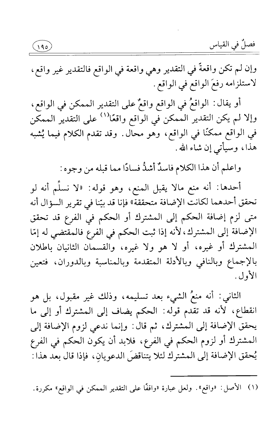 أو يقال الواقعُ في الواقع واقعٌ على التقدير الممكن في الواقع وإلا لم يكن التقدير الممكن في الواقع واقعًا على التقدير الممكن في الواقع ممكنًا في الواقع وهو محال وقد تقدم الكلام فيما يُشبه هذا وسيأتي إن شاء الله