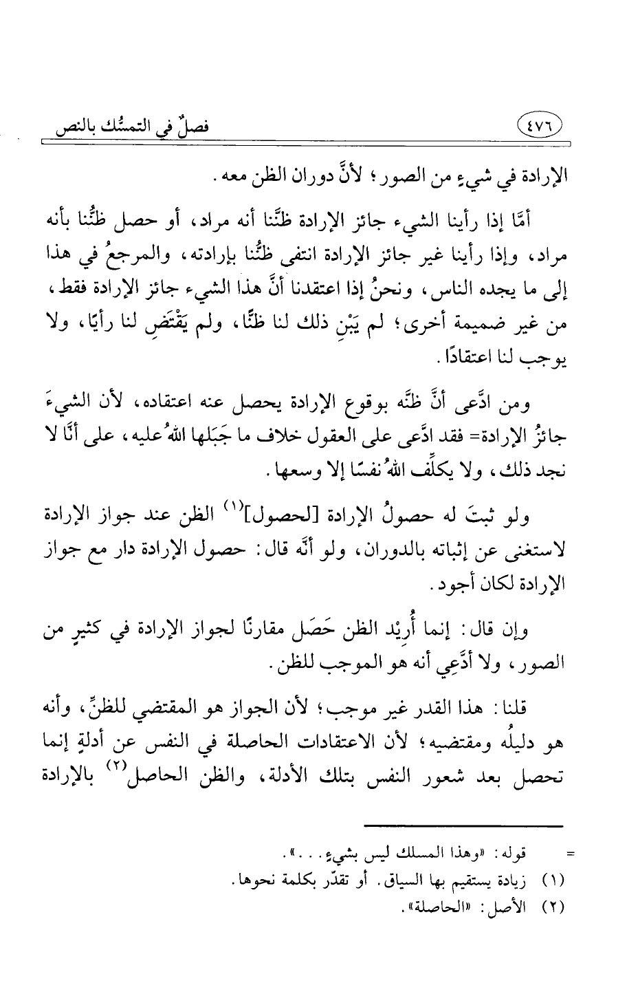 ولو ثبتَ له حصولُ الإرادة لحصول الظن عند جواز الإرادة لاستغنى عن إثباته بالدوران ولو أنَّه قال حصول الإرادة دار مع جواز الإرادة لكان أجود