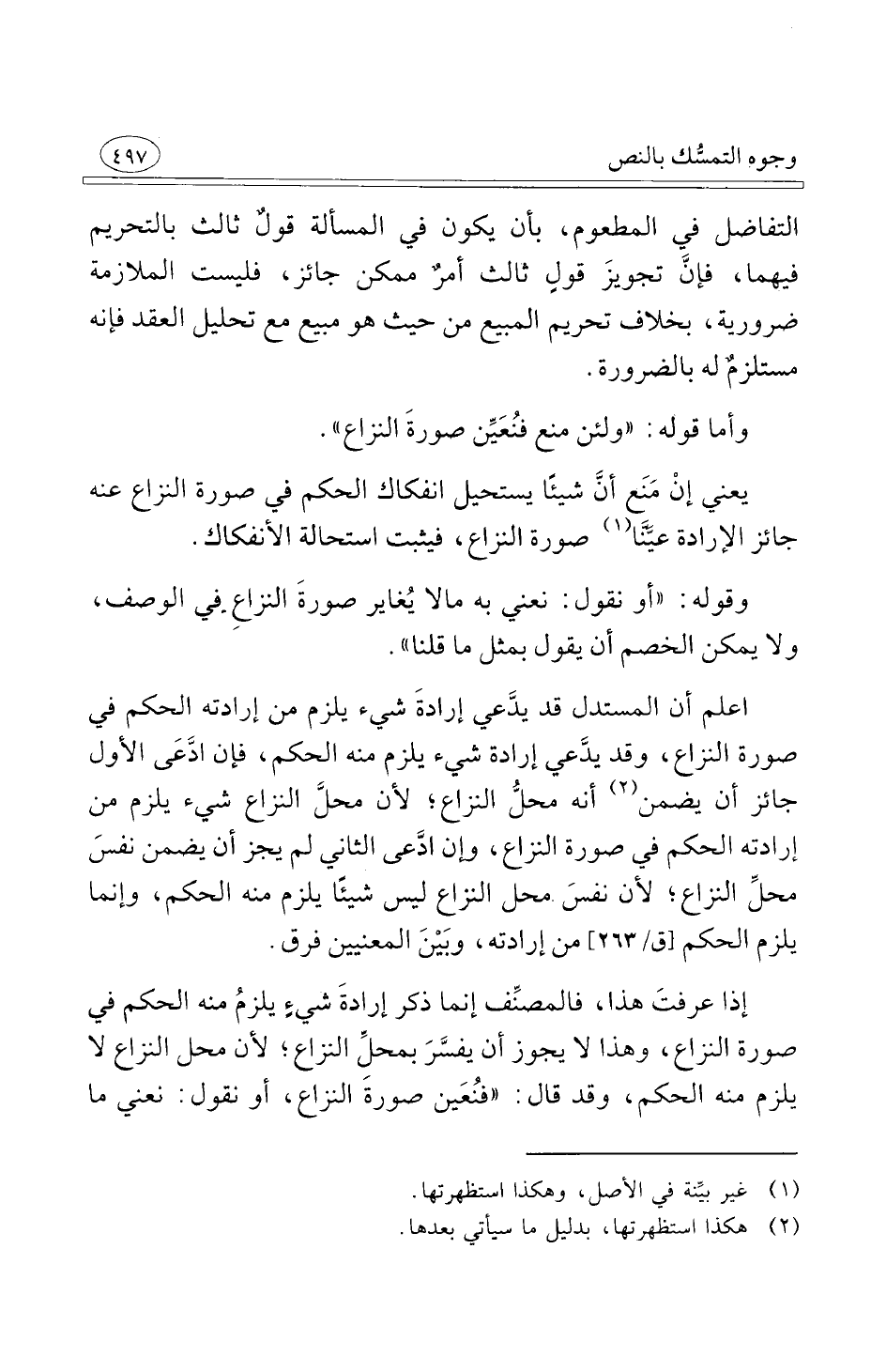 إذا عرفتَ هذا فالمصنِّف إنما ذكر إرادةَ شيءٍ يلزمُ منه الحكم في صورة النزاع وهذا لا يجوز أن يفسَّرَ بمحلِّ النزاع لأن محل النزاع لا يلزم منه الحكم وقد قال فنُعَين صورةَ النزاع أو نقول نعني ما